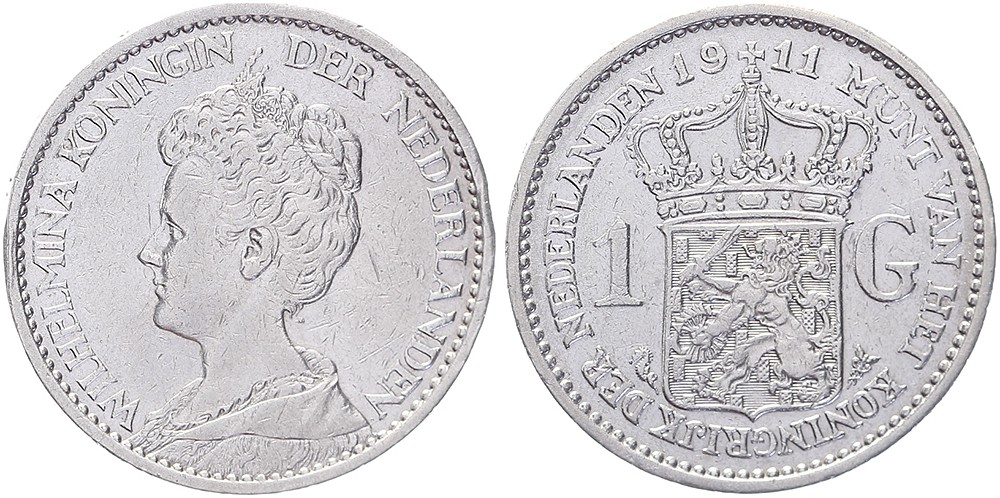 1 Gulden 1911 mmt. zeepaardje Sch. 813 Zeer fraai