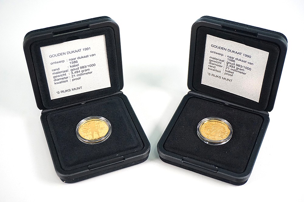 Lot (2) Gouden dukaat 1990 en 1991. Proof in cassette.