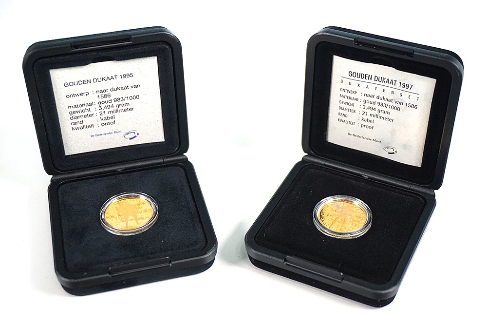 Lot (2) Gouden dukaat 1995 en 1997. Proof in cassette.