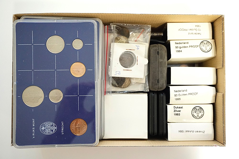 Mixed restlot met moderne uitgiften o.a. FDC- en Proofsets o.a. 3 x zilveren dukaat, 2 x zilveren tientje 1982 en 7 x 50 gulden. Toegevoegd enig eenvoudig allerlei!