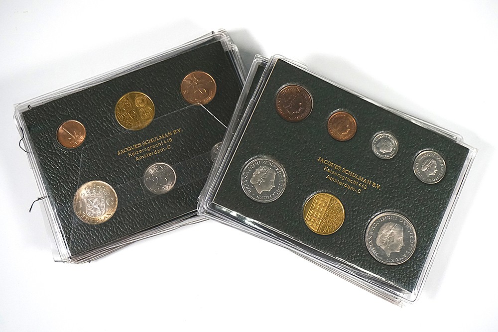 Lot (13) zogenaamde FDC-sets Nederland waaronder 6 stuks originele Jacques Schulman sets met de volgende jaartallen 1965, 1968 (2), 1969 haan, 1972 en 1974.