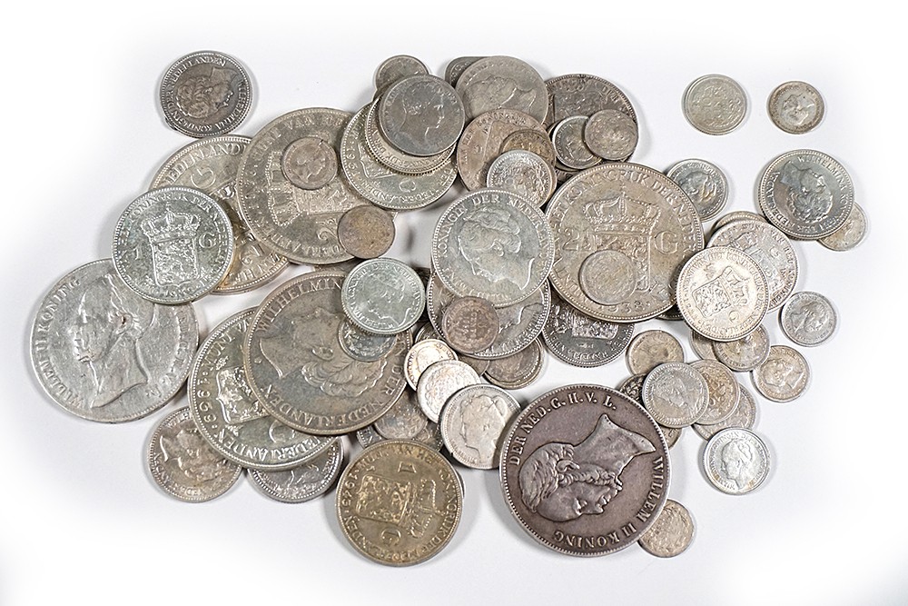 Leuk lot koninkrijk in blikje. Uitsluitend zilveren munten. O.a. 5 cent Willem III t/m rijksdaalder. Kwaliteit overwegend fraai / zeer fraai. Leuk!