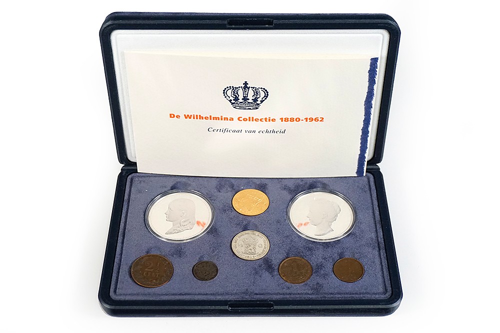 De Wilhelmina-collectie 1880-1962 o.a. gouden tientje 1917 en 2 mooie zilveren penningen.