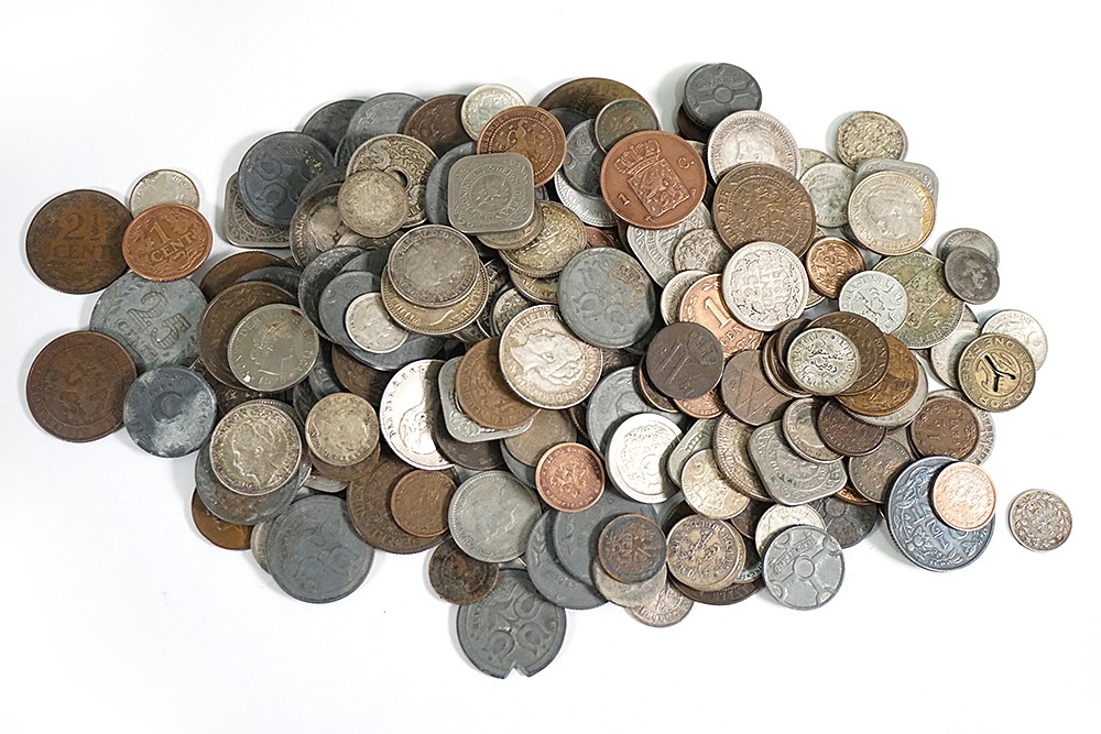 Doosje boordevol gebruikt koninkrijk allerlei, ook zilver. Matige kwaliteit.