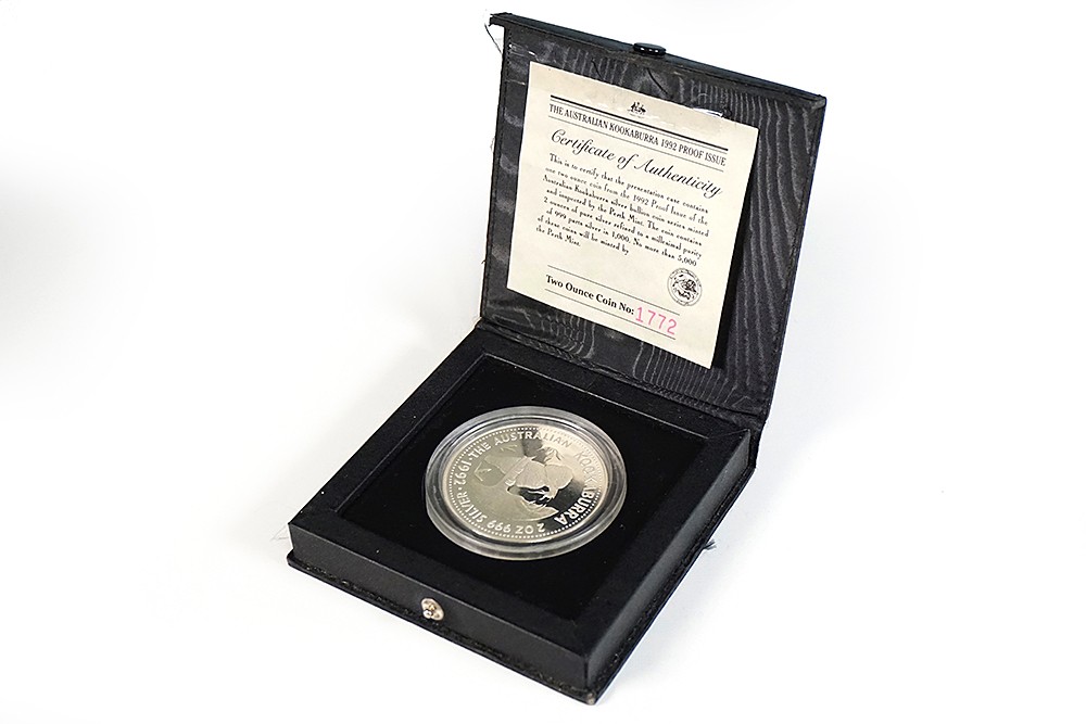 $2 1992 Kookaburra. KM 176. In original black case. Proof.
