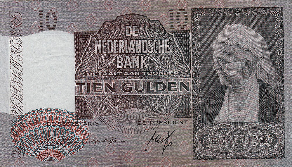 10 Gulden 1940-I Emma. Mev. 41-1; PL37. [# 4 AB 079675]. Ruim prachtig/ bijna UNC.