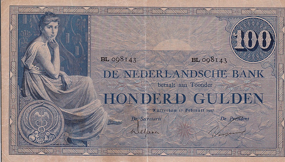 100 Gulden 1927 Grietje Seel. Mev. 116-3b; AV 80.1b.5.1. [# BL 098143]. Fraai.