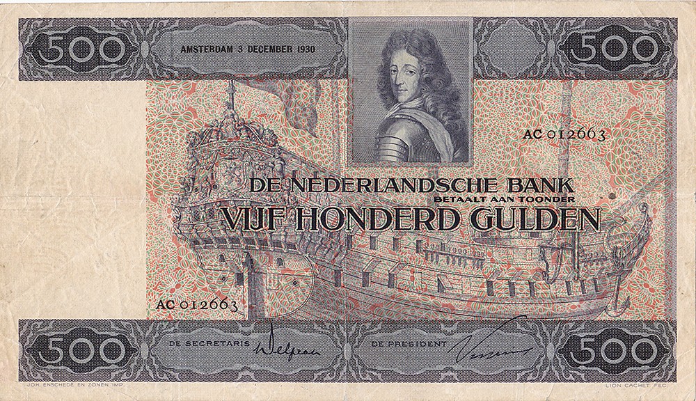 500 Gulden 1930 Stadh. Willem III. Mev. 143-1; AV 101.1. [# AC 012663]. Zeer fraai.