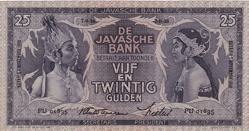 25 Gulden 1938. P.80.b. [FU 01835]. Prachtig.