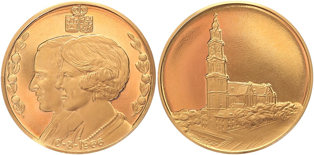 1966 Den Haag. Huwelijk Beatrix en Claus in de Grote Kerk op 10 maart. AU 29,87 [17,41 gram], 986/1000. Geslagen met gepolijste stempels. FDC.