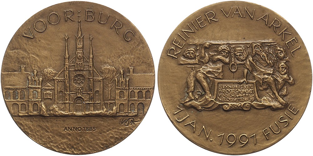 1991 Vught/Den Bosch. Fusie psychiatrische ziekenhuizen Voorburg & Reinier van Arkel. Gezicht op Voorburg. / Gevelsteen Reinier van Arkel. Æ 60. Willem Slingerland. Prachtig.