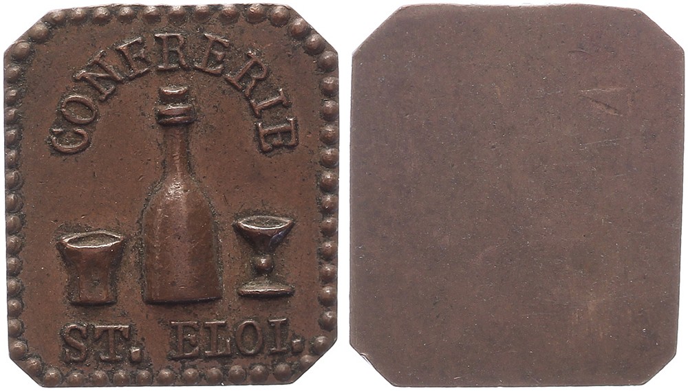 z.j. Bier/wijnpenning Confrères St. Eloi. Koper, rechthoekig 23 x 20. Snoeck 629. Prachtig.