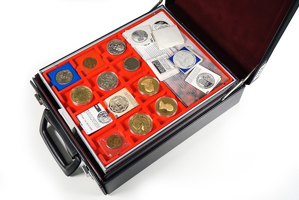 Mooie luxe Lindnerkoffer met 4 Lindnertableaux gevuld met eenvoudig en modern penningspul.