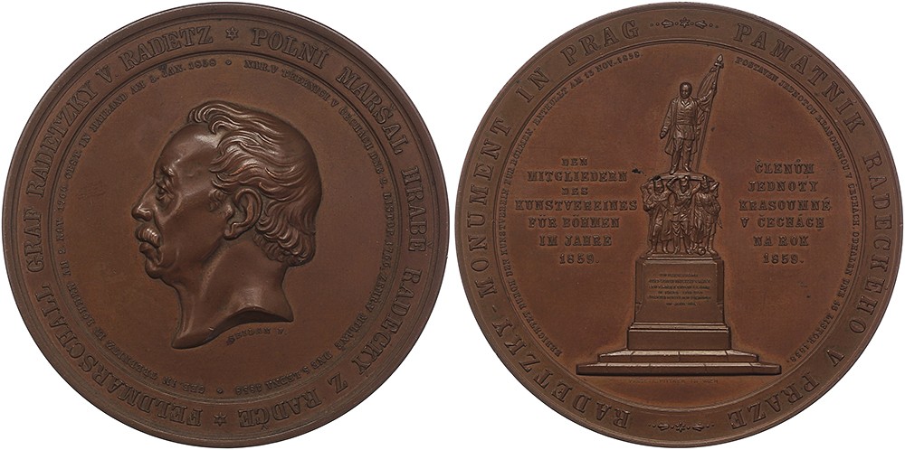 1859 Erection monument Field Marschall Count Joseph Radetzky. Head Radetzky left. / View monument at Prague. Æ 80. Donebauer 3698. W. Seidan. VF / EF.