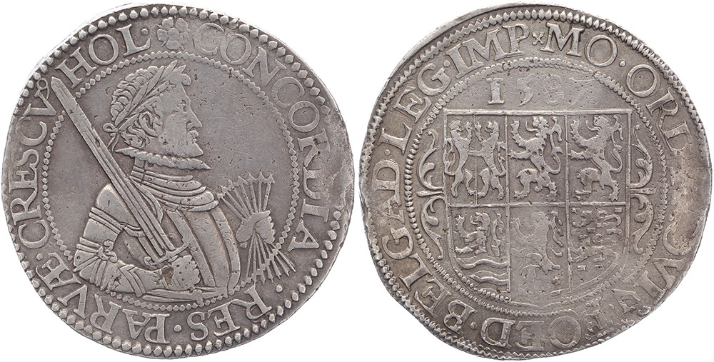 Leicesterrijksdaalder 1587 met zes provinciewapens. Delm. 900; CNM 2.28.60; HPM 32. Fraai / zeer fraai.
