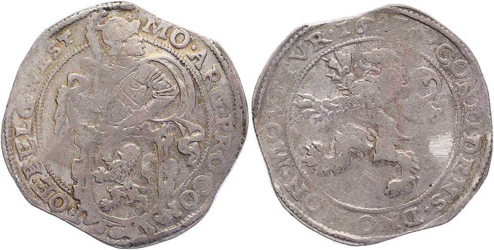 Leeuwendaalder 16(37). Delm. 836; CNM 2.46.24; HPM 17. Onregelmatig muntplaatje. Fraai.