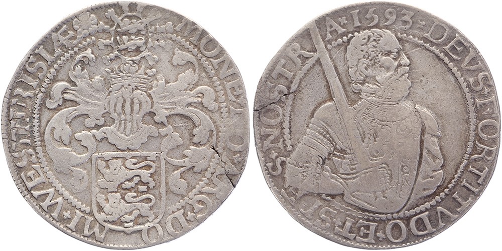 Gehelmde rijksdaalder of prinsendaalder 1593. Delm. 923; CNM 2.46.28; HPM 24. Zeer fraai.
