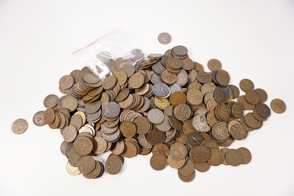 Groot aantal bronzen centen (498) van het kleine type (1877-1943), w.o. 3 x 1896, 2 x 1897, 6 x 1907 en 7 x 1924. Diverse kwaliteiten.