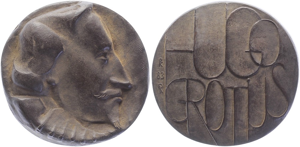 1983 Hugo de Groot. Hoofd De Groot naar rechts. / Zijn naam in vlakvullende letters. Æ gegoten 65. Tilanus pag. 423-425. Jos Reniers. Prachtig.