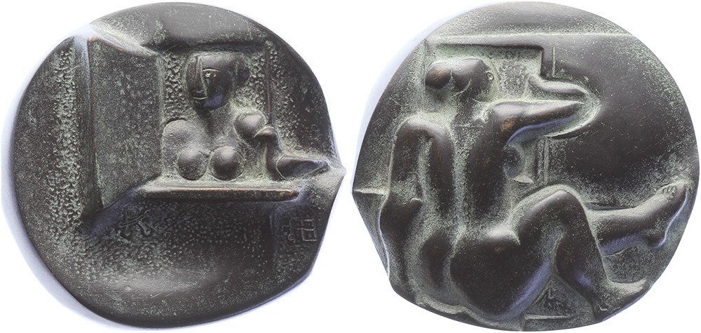 1991 Vrouw in raam. Vrouw kijkt uit raam; duif op de vensterbank. / Vrouw kijkt uit raam, op de rug gezien. Æ gegoten 80. Tilanus pag. 495-497. Fons Bemelmans. Prachtig.