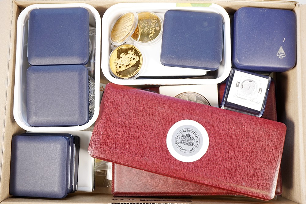 Doos vol met moderne Oranjepenningen. Veel zilver!