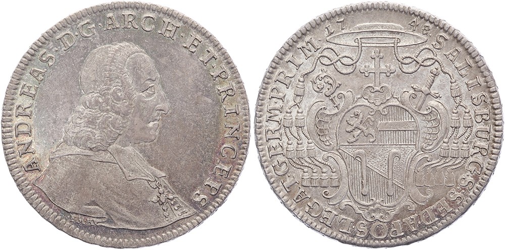 Thaler 1748. Probszt 2217; Davenport 1245; KM 35. Prachtvolle Patina. Vorzüglich.