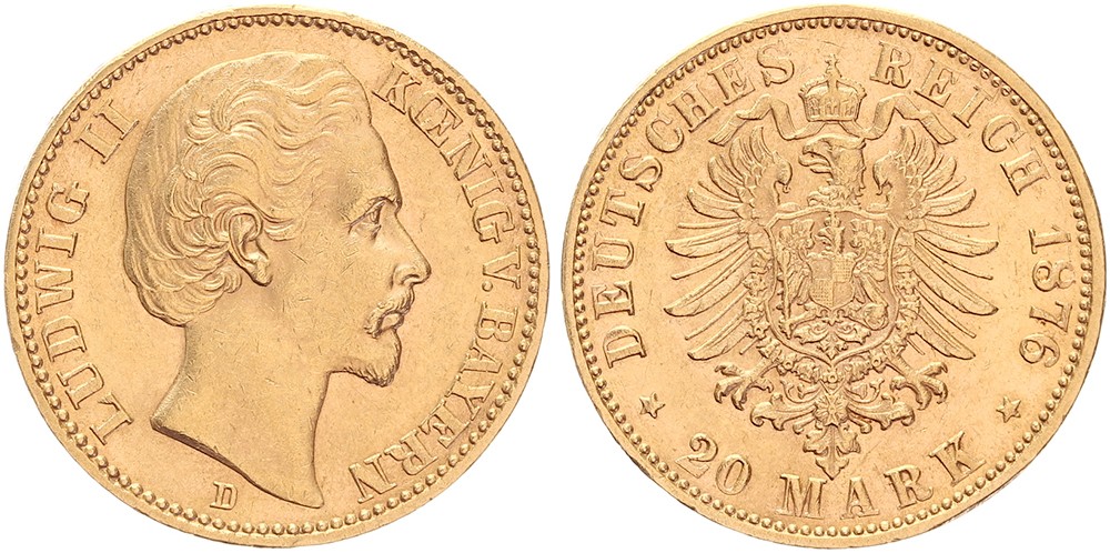 20 Mark 1876 D. Jaeger 197; Fr. 16; KM 900. Sehr schön.