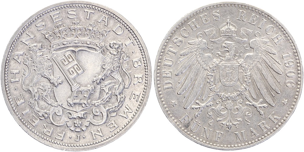 5 Mark 1906. Jaeger 60; KM 251. Vorzüglich / Stempelglanz.