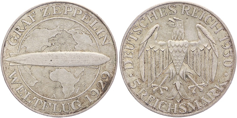 5 Mark 1930A Zeppelin. Jaeger 343; KM 68. Sehr schön.