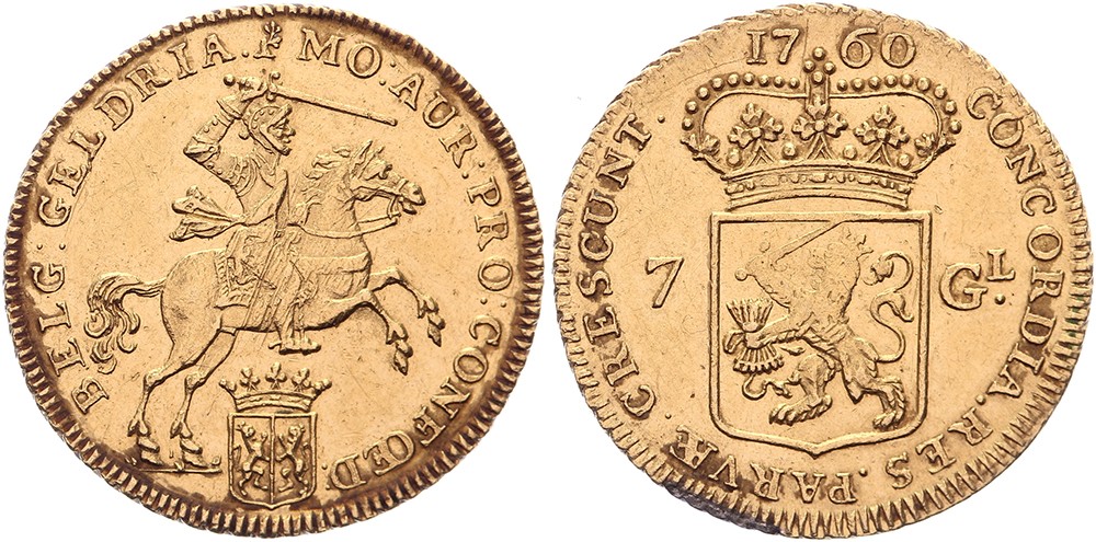 ½ Rijder of 7 Gulden 1760. Delm. 854; CNM 2.17.69; HPM 53 [4,97 gram]. Ruim fraai / Bijna zeer fraai.