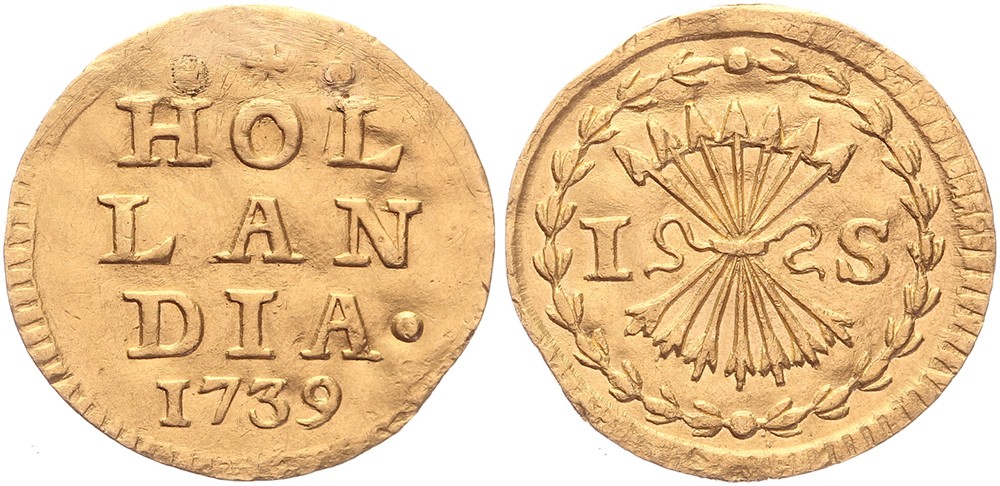 Bezemstuiver 1739 mogelijk uit 1738. Afslag in goud van 1,65 gram. Delm. 820; CNM 2.28.121; HPM 78.2. Zeer fraai / Prachtig.
