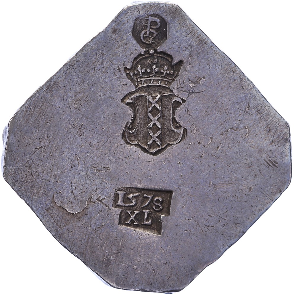 40 (XL) Stuivers 1578, met monogram PG. v.Gelder 129; Delm. 204; CNM 2.02.19; HPM 05.Geslagen na het beleg. Prachtig.