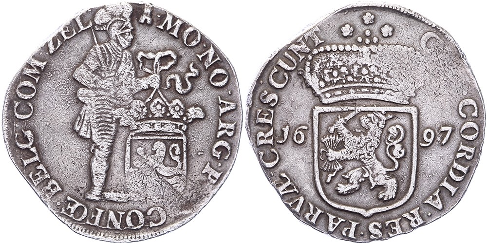 Dukaat 1697 uit 1696. Delm. 976; CNM 2.49.50; HPM 50. Zeer fraai.