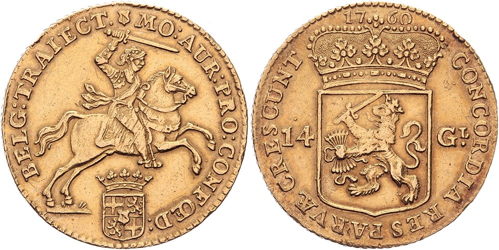 Rijder of 14 Gulden 1760. Delm. 970; CNM 2.43.37; HPM 31 [9,93 gram]. Ruim zeer fraai.
