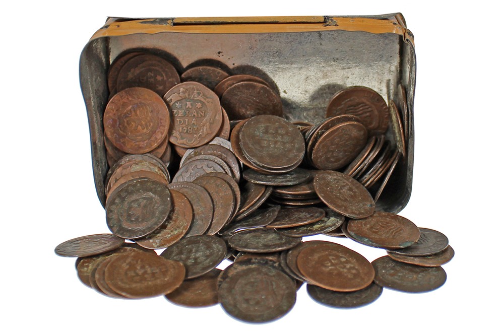 Blikje ‘Bêtises de Bruxelles’ met 148 Zeeuwse duiten.