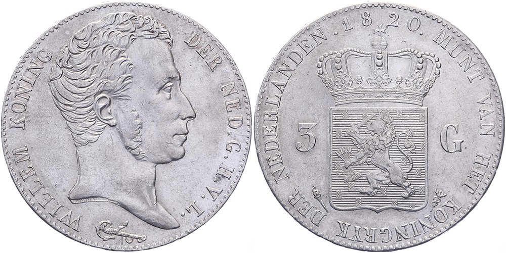3 Gulden 1820 Utrecht mmt. fakkel Sch. 242. Mooie glans Prachtig