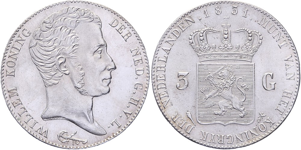 3 Gulden 1831 uit 1824 Utrecht mmt. fakkel Sch. 249a. Nieuwglans Vrijwel FDC