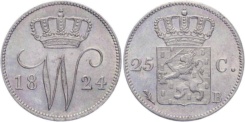 25 Cents 1824 Brussel mmt. palmtak Sch. 295. Mooie glans Vrijwel FDC