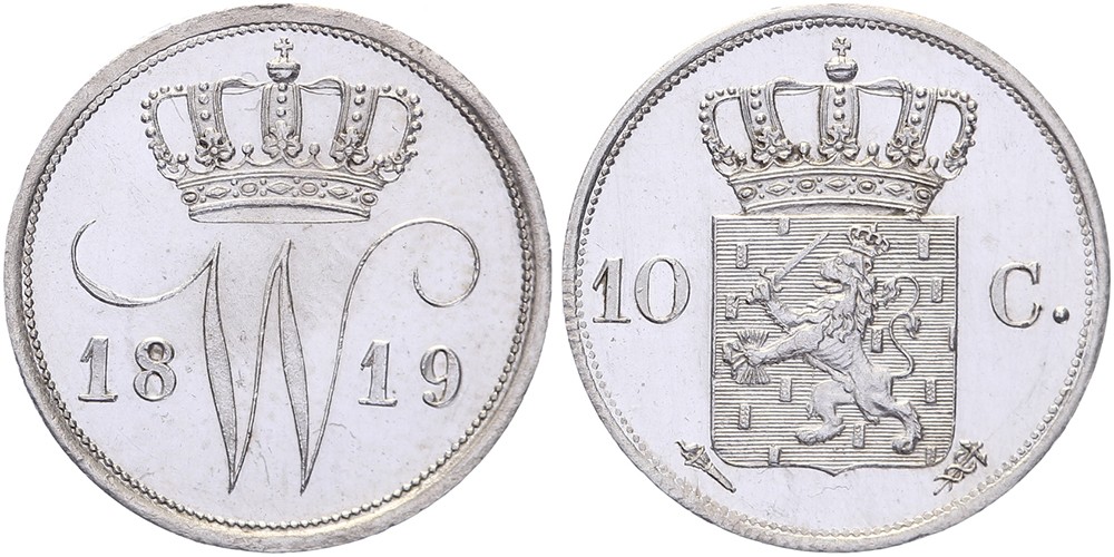 10 Cents 1819 Utrecht mmt. fakkel Sch. 303. Met gepolijste stempels geslagen Prachtig / FDC