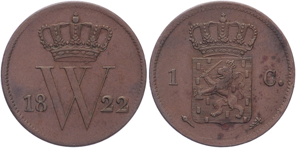 1 Cent 1822 Utrecht mmt. fakkel Sch. 326 Ruim zeer fraai