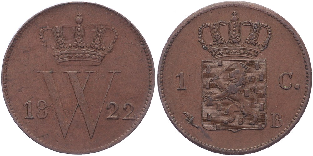 1 Cent 1822 Brussel mmt. palmtak Sch. 339 Prachtig