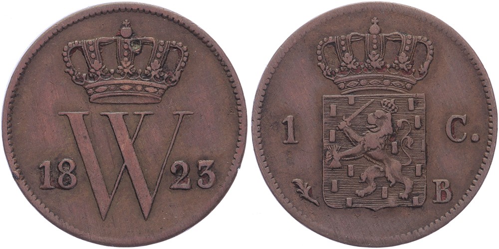 1 Cent 1823 Brussel mmt. palmtak Sch. 340 Vrijwel prachtig