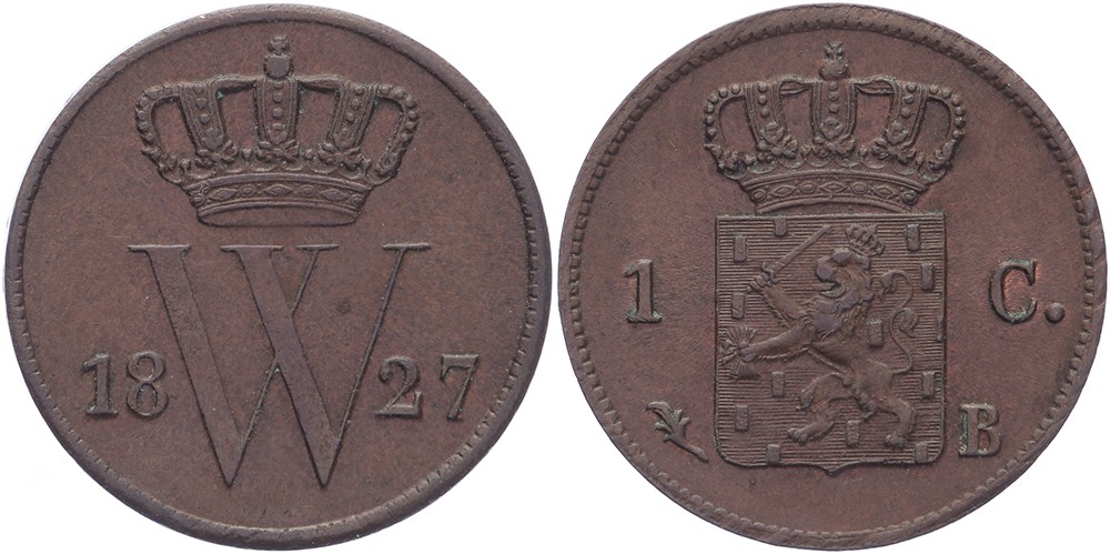 1 Cent 1827 Brussel mmt. palmtak Sch. 344. Iets originele kleur Prachtig / FDC