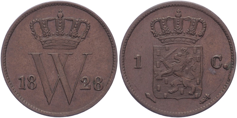 1 Cent 1828 Utrecht mmt. fakkel Sch. 331 Zeer fraai / Prachtig