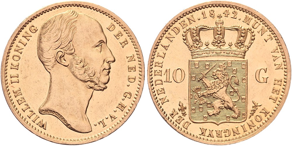 10 Gulden 1842 mmt. lelie [6,73 gram] Sch. 502 Zeldzaam Vrijwel prachtig