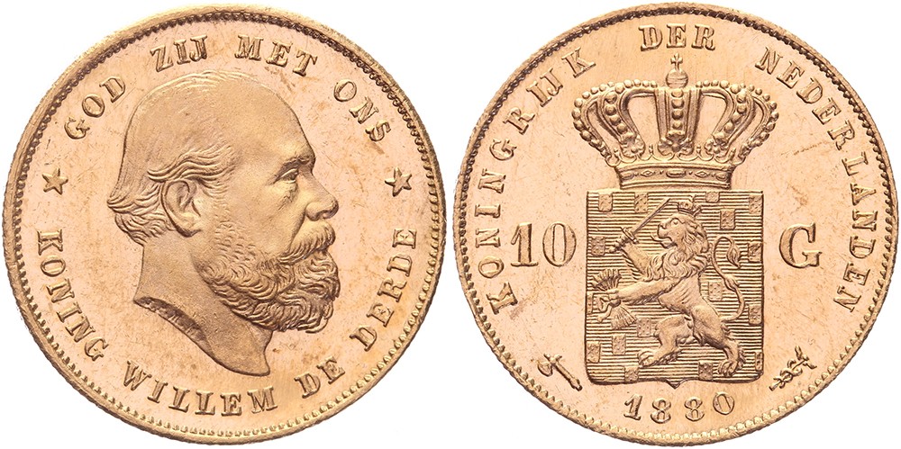 10 Gulden 1880 mmt. bijl Sch. 553 Prachtig