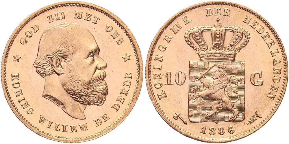 10 Gulden 1886 mmt. bijl Sch. 555 Prachtig