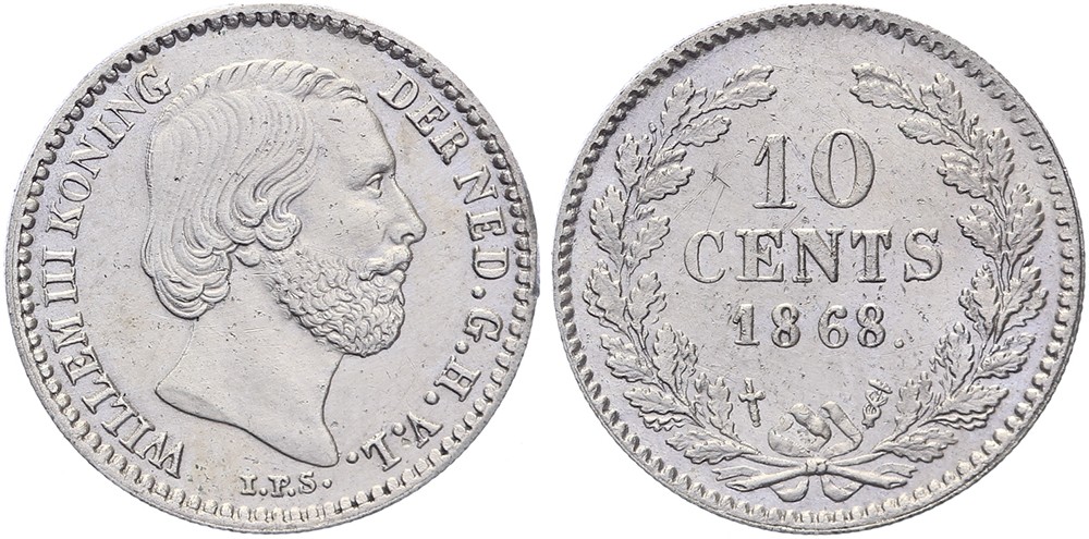 10 Cents 1868 mmt. zwaard Sch. 648 Vrijwel prachtig
