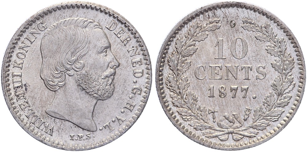 10 Cents 1877 mmt. bijl Sch. 655 Ruim prachtig