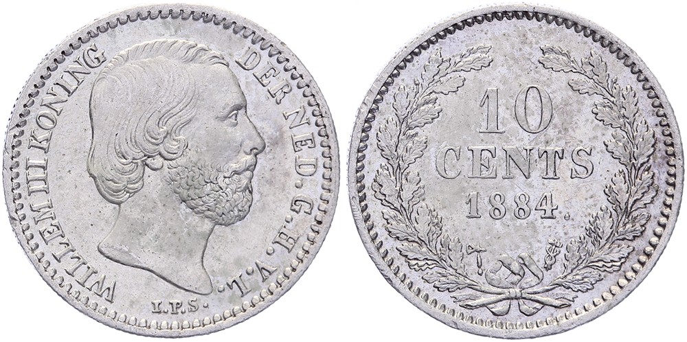 10 Cents 1884 mmt. bijl Sch. 661 Prachtig